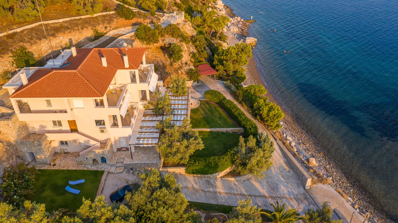 The estate combines peaceful surroundings with convenient access to Loutraki’s attractions—thermal spas, seafront promenade, casino, and a vibrant town center—making it both a retreat and a well-connected hub.